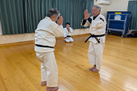 ご年配の方は、まず「無理のない修行」を行う事が重要となります。若い頃は自由に動いていた手足も、少しずつ動かしにくくなってきているのを実感している方こそ、少林寺拳法をやることで手足の関節が緩み、上がらなかった膝や肩があがるようになるのが実感できるはずです。少林寺拳法の基本技術は、日々の健康体操としても十分な効果がありますので、健康増進の一環として少林寺拳法を始められてはいかがでしょうか?