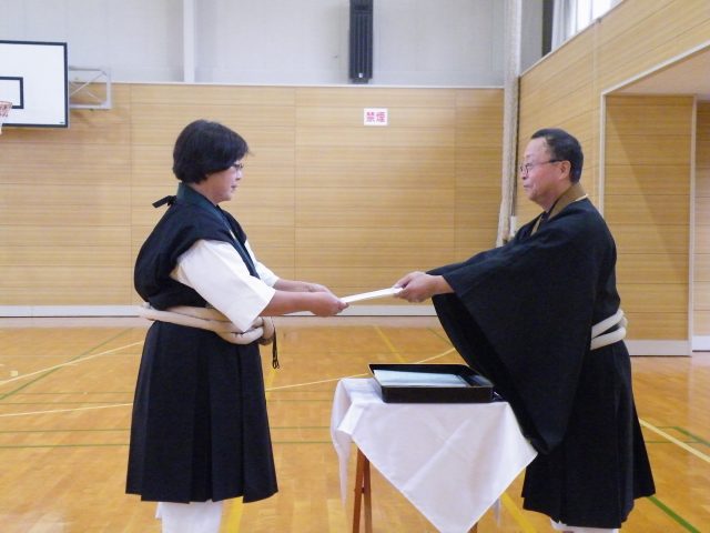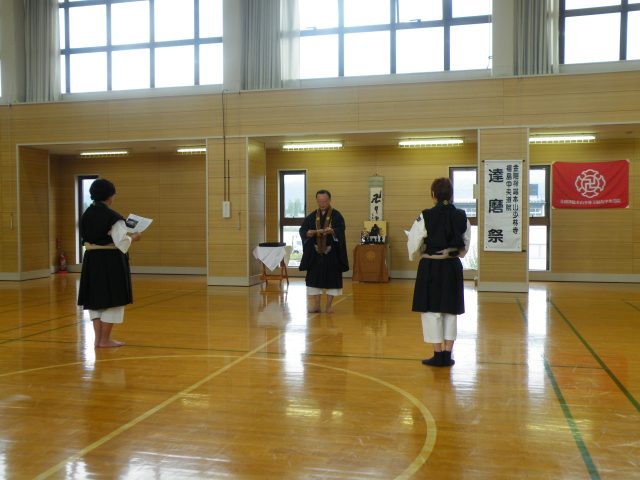2025年度の福島中央道院の達磨祭です 2/32025/10/19 2:54 pm合掌 門信徒献香のあと、導師法話です。 達磨祭ですから、達磨が残した教えを話すところですが、 プリントを用意してきたので、1階のホールで学習することに して、ここでは、先月の地域指導者研修会で教えていただいた 「上求菩提」と「下化衆生」から、自己確立の修行とその布教 活動を自分の生き方に取り込むことの大切さをお話しました。この後、先月の昇級試験合格者へ合格証を伝達しました。 いいね!>> 1人