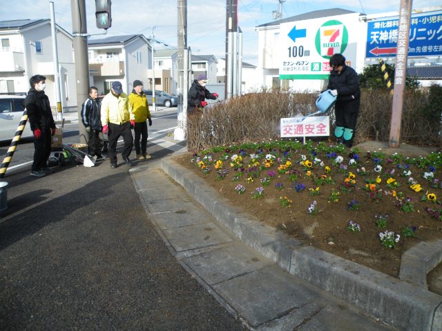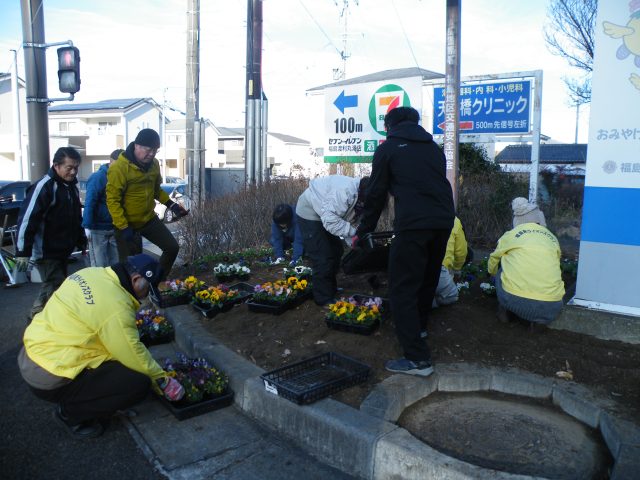 国道4号線福島市渡利弁天山交差点そばのポケットパークキビタン花壇の維持管理をする