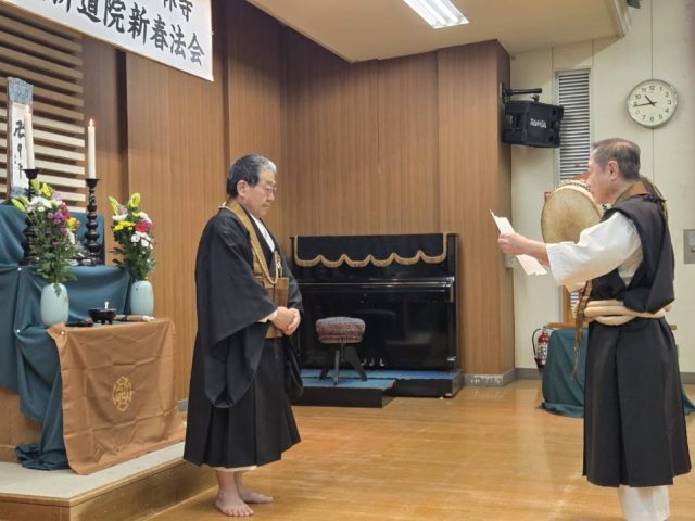 齋野光樹道院長が道院長挨拶で、「昨今の国内外の情勢は、自己の権利と利益のみを主張し、強者が弱者を支配しようとして戦争や事件を誘発し、憂えるべき状態にあります。そういう状態に有るとき、必要なのは金剛禅の教えである自他共楽です。」と話しされました。